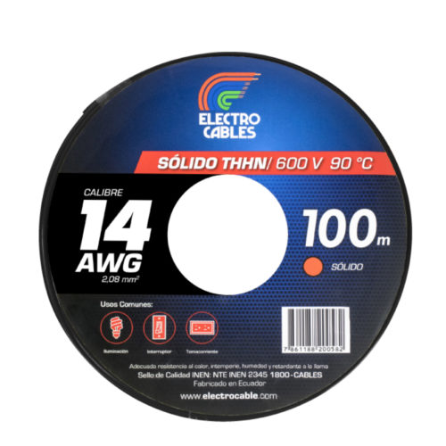 Alambre Sólido Thhn #14 Awg Negro 100m | Electrocables