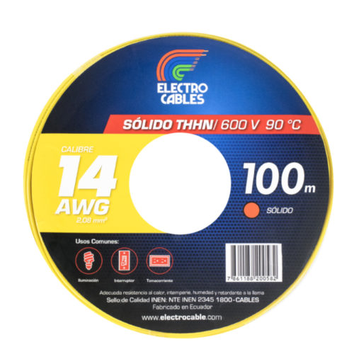 Alambre Sólido Thhn #14 Awg Amarillo 100 | Electrocables