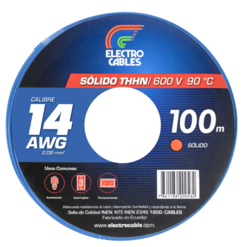 Alambre Sólido Thhn #14 Awg Azul 100m | Electrocables