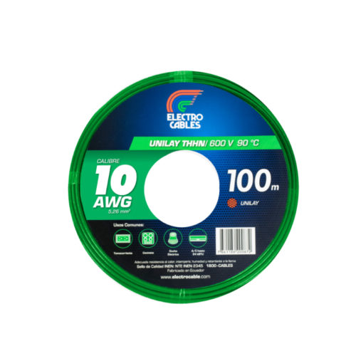 Cable Thhn # 10 Unilay Awg Verde 100m | Electrocables